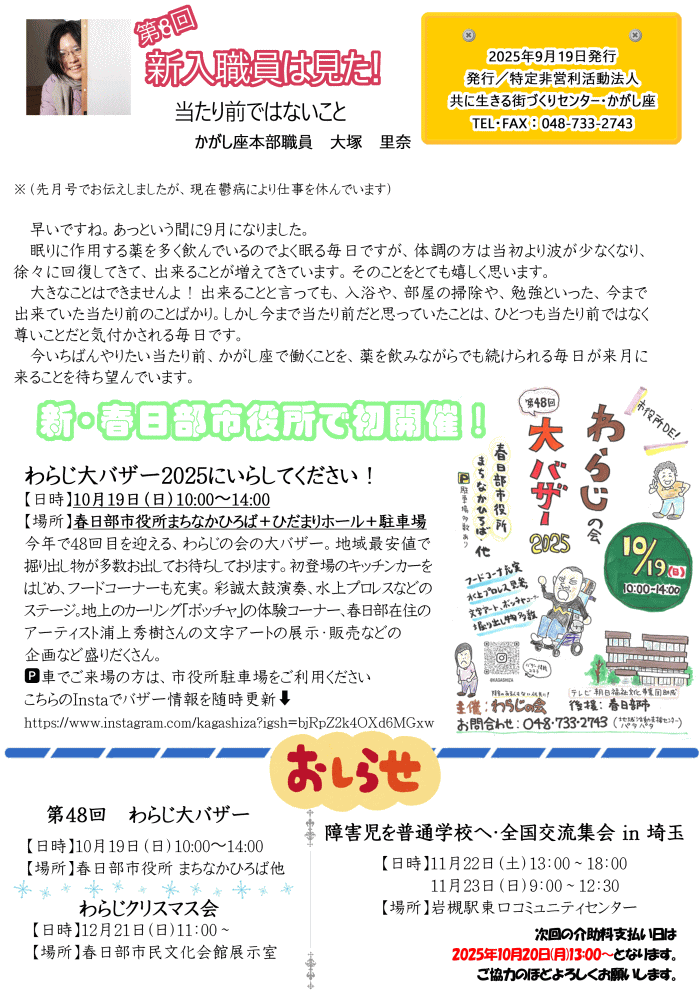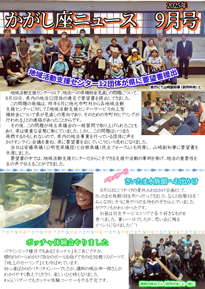 NPO法人 共に生きる街づくりセンター・かがし座のホームページへようこそ。