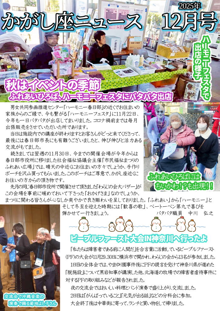 NPO法人 共に生きる街づくりセンター・かがし座のホームページへようこそ。